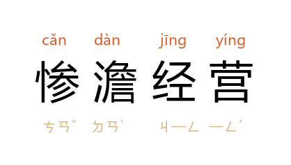 亦作“惨淡经营”。①原指作画前先用浅淡颜色勾勒轮廓,苦心构思,经营位置。南朝齐谢赫《古画品录》以经营位置为绘画六法之一。②引申指苦心谋划并从事某项事情。唐·杜甫《丹青引赠曹将军霸》:“诏谓将军指绢素,意匠惨淡经营中。”