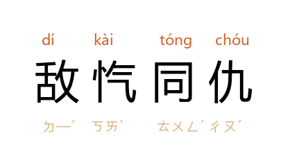 出处《诗经 秦风 无衣》:“修我戈矛,与子同仇。” 左丘明《左传 文公四年》:“诸侯敌王所忾,而献其功。”