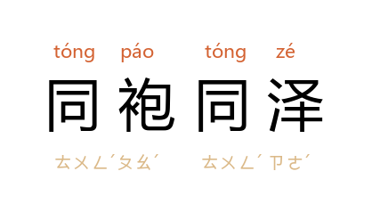 袍:长衣服的通称;泽:内衣。原形容士兵互相友爱,同仇敌忾。比喻共事的关系(多指军人)。也指有交情的的友人。
