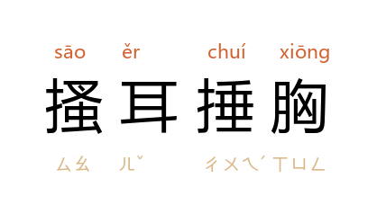 搔:抓挠。搔耳朵,捶胸膛。形容后悔、烦恼的样子。