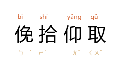 谓低头则必拾地上之物,仰首则必取树上之物。形容极其勤劳节俭。语出《史记·货殖列传》:“然家自父兄子孙约,俛有拾,仰有取,贳贷行贾徧郡国。”