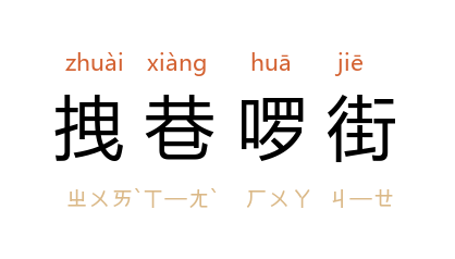出处元·无名氏《争报恩》第二折:“我恰行出衙门,那妮子舞旋旋,摩拳擦掌,叫吖吖拽巷啰街。”