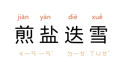 煎盐:提炼白色精盐;迭:堆迭;迭雪:堆迭的白雪。像晶莹洁白的精盐和雪一样。
