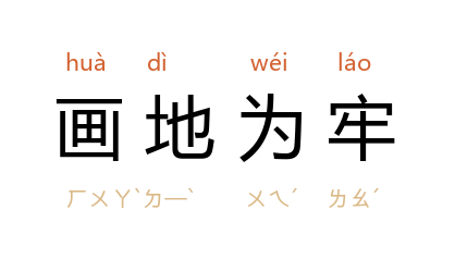 牢:牢狱。在地上画圈;囚人于内;作为牢狱。后喻指仅在一定的小范围内活动。