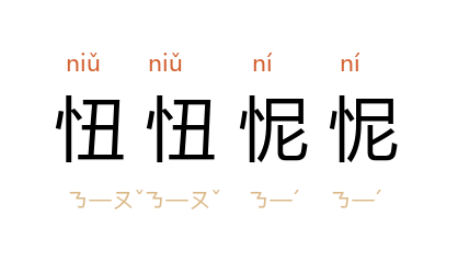 注音ㄋ一ㄡˇ ㄋ一ㄡˇ ㄋ一ˊ ㄋ一ˊ