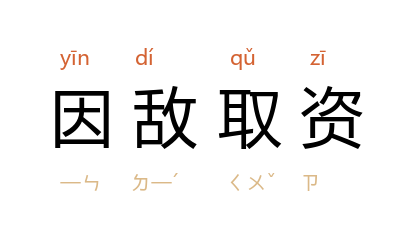 因:依,靠;资:财物,资用。从敌人方面取得资用、给养。