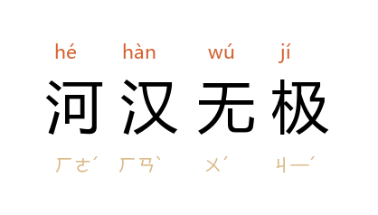 河汉:银河;极:尽头,边际。银河广阔,无边无际。比喻言论荒诞不经,难以置信。亦比喻恩泽广大,使人难以报答。