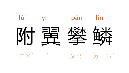 出处《北史·孙腾斛律羡等传论》:“位非宠进,功籍势成,附翼攀鳞,郁为佐命之首。”