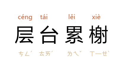 层:重复,接连不断;累:重叠;榭:建在台上的房屋。形容建筑物错落有致。