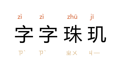 每个字都像珍珠一样。比喻谈话、文章的词句十分优美。珠玑:珠子。