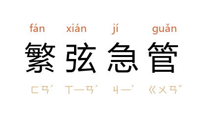 出处唐 钱起《玛瑙杯歌》:“繁弦急管催献酬,倏若飞空生羽翼。”