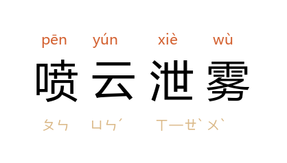 例子郭沫若《洪波曲》第16章:“在读书人的脑中,仿佛它真像是一个‘天假神柄专其雄’的神物,时常在‘喷云泄雾’。”