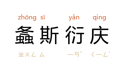 螽斯:昆虫名,产卵极多;衍:延续;庆:喜庆。旧时用于祝颂子孙众多。