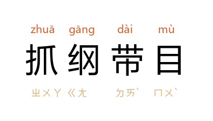 纲:网的总绳,引申为事物的关健环节;目:网眼,引申为次要部分。比喻办事情、做工作的时候要抓住关健环节带动一般。