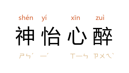 出处清·褚人获《隋唐演义》第47回:“听到后边,一回儿像尽是歌声,一回儿像尽是笛声,真听得神怡心醉。”