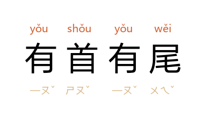 首:头。有开头,有结尾。做事能坚持到底。指故事或文章结构完整。