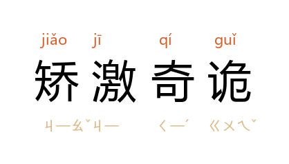 矫激:矫异激切;奇诡:奇特怪异。故作矫异激切、奇特怪异