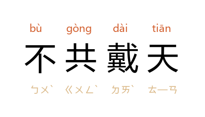 共:共同;戴:顶着。不跟仇敌在同一个天底下生活。形容仇恨极深;誓不两立。