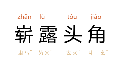 崭:崭然;突出的样子;露:显露;头角:比喻人的气概和才华。比喻突出地显示出才能和本领。
