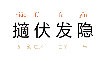 擿:揭露。伏:隐藏。发:揭发。隐:隐蔽。揭露检举坏人和隐藏的坏事。亦作“擿奸发伏”、“擿伏发奸”。
