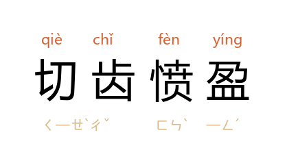 切齿:齿相磨切,愤恨。紧咬牙齿十分愤怒。形容非常愤怒。