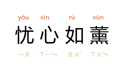 薰:同“熏”。忧虑的心情就像被火熏烤一样。形容十分焦虑。