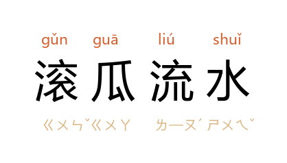 出处茅盾《霜叶红似二月花》五:“他得意地哈了一声就滚瓜流水地一口气说道:‘说是男女在那件事上也该平等。’”