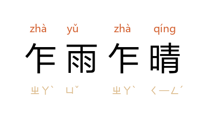 乍:忽然。指忽儿下雨,忽儿天晴。比喻人心情不定,变化多端,也比喻时局变化莫测。