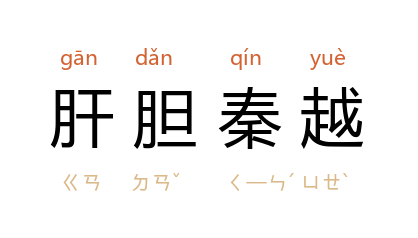 肝胆:比喻亲近;秦越:秦国与越国,比喻对立或疏远。比喻虽近犹远,虽亲犹疏。