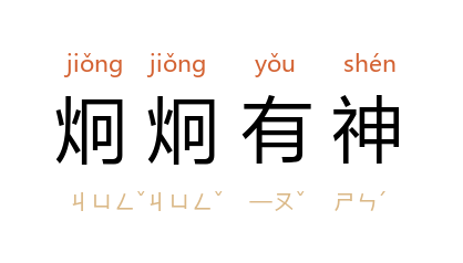 炯炯:明亮的样子。形容眼睛明亮有神。