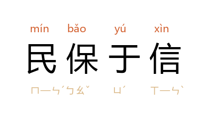 出处《左传·定公十四年》:“谚曰:‘民保于信。’吾以信义也。”