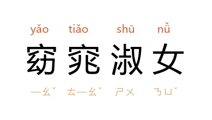窈窕:美好的样子。形容美好的姿态。淑:品德美好。指美好善良而文雅的女子。