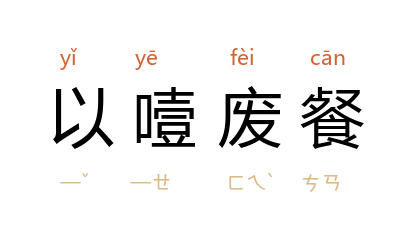 出处《南史 贺琛传》:“卿又云‘百司莫不奏事,诡竞求进’。今不许外人呈事,于义可否?以噎废餐,此之谓也。”