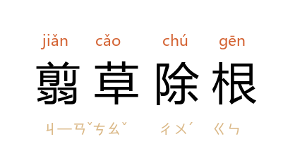 注音ㄐ一ㄢˇ ㄘㄠˇ ㄔㄨˊ ㄍㄣ
