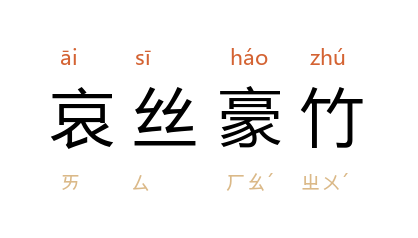 丝、竹:弦乐、管乐的通称;豪竹:粗大的竹管制成的乐器。形容管弦乐声的悲壮动人。