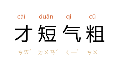 出处清 褚人获《隋唐演义》第83回:“禄山才短气粗,当此大镇,深不能胜任。”