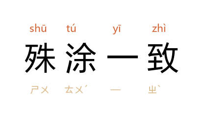 殊:不同的;涂:道路。不同的道路,到达同一个结局。比喻采取不同的方法而达到同一目的。
