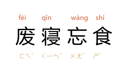 废:停止。顾不上睡觉;忘掉了吃饭。形容学习或工作积极努力;用心专一。