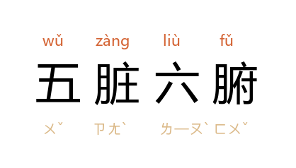五脏:脾、肺、肾、肝、心;六腑:胃、大肠、小肠、三焦、膀胱、胆。人体内的各种器官。比喻事物的内部情况。