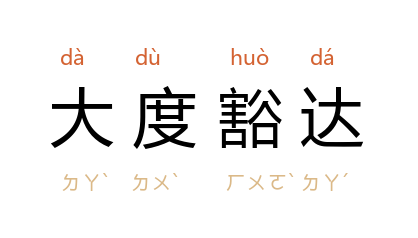 大度:气量大;豁达:开朗。形容人宽宏开通,有度量,能容人。