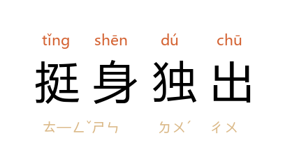 挺:撑直。面对着艰难或危险的事情,勇敢地站出来。