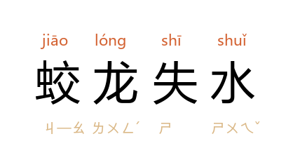 蛟:传说的无角龙。蛟龙失掉了赖以生存的水。比喻英雄失去凭借