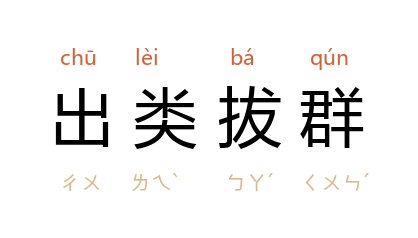 出:超过;类:同类;拔:超出。指人的品德才能超出同类之上。
