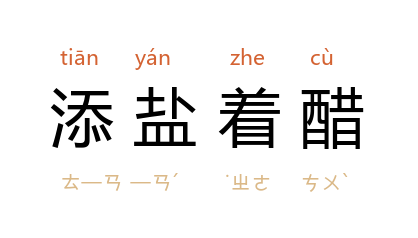 出处沈从文《王谢子弟》:“律师添盐着醋把一些大人物的话转来转去说给七爷听。”