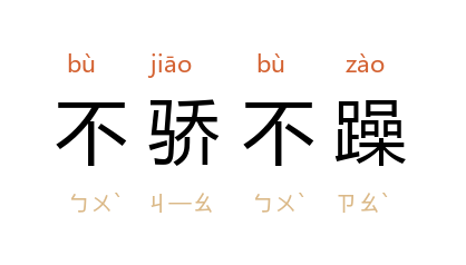 骄:骄傲;躁:急躁。不骄傲;不急躁。