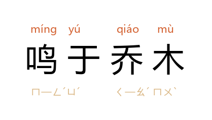 《诗·小雅·伐木》:“伐木丁丁,鸟鸣嘤嘤。出自幽谷,迁于乔木。”后以“鸣于乔木”比喻仕进达于高位。