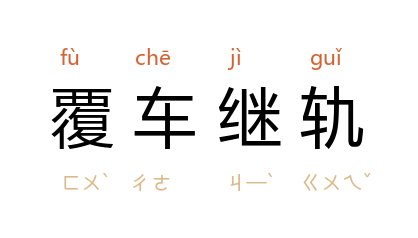 覆:翻,倾覆;轨:车辙。前面车翻了,后面的车依然照辙行驶。比喻继续按照错误判断行事。