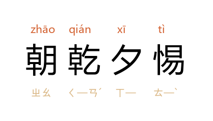 朝乾夕惕:乾:乾乾,即自强不息;惕:小心谨慎。形容一天到晚勤奋谨慎,没有一点疏忽懈怠。