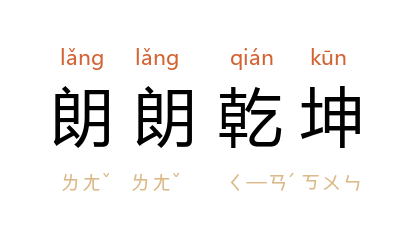 朗朗:明朗、清亮;乾坤:原是《周易》中的两个卦名,这里指天地、世界等。形容政治清明,天下太平。