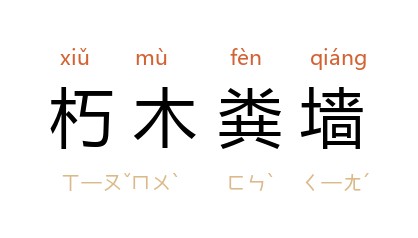 出处先秦 孔子《论语 公冶长》:“朽木不可雕也,粪土之墙,不可圬也。”